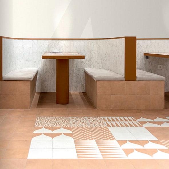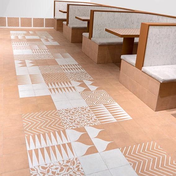 Baldosas imitación hidráulico realizadas en porcelánico de alta calidad.