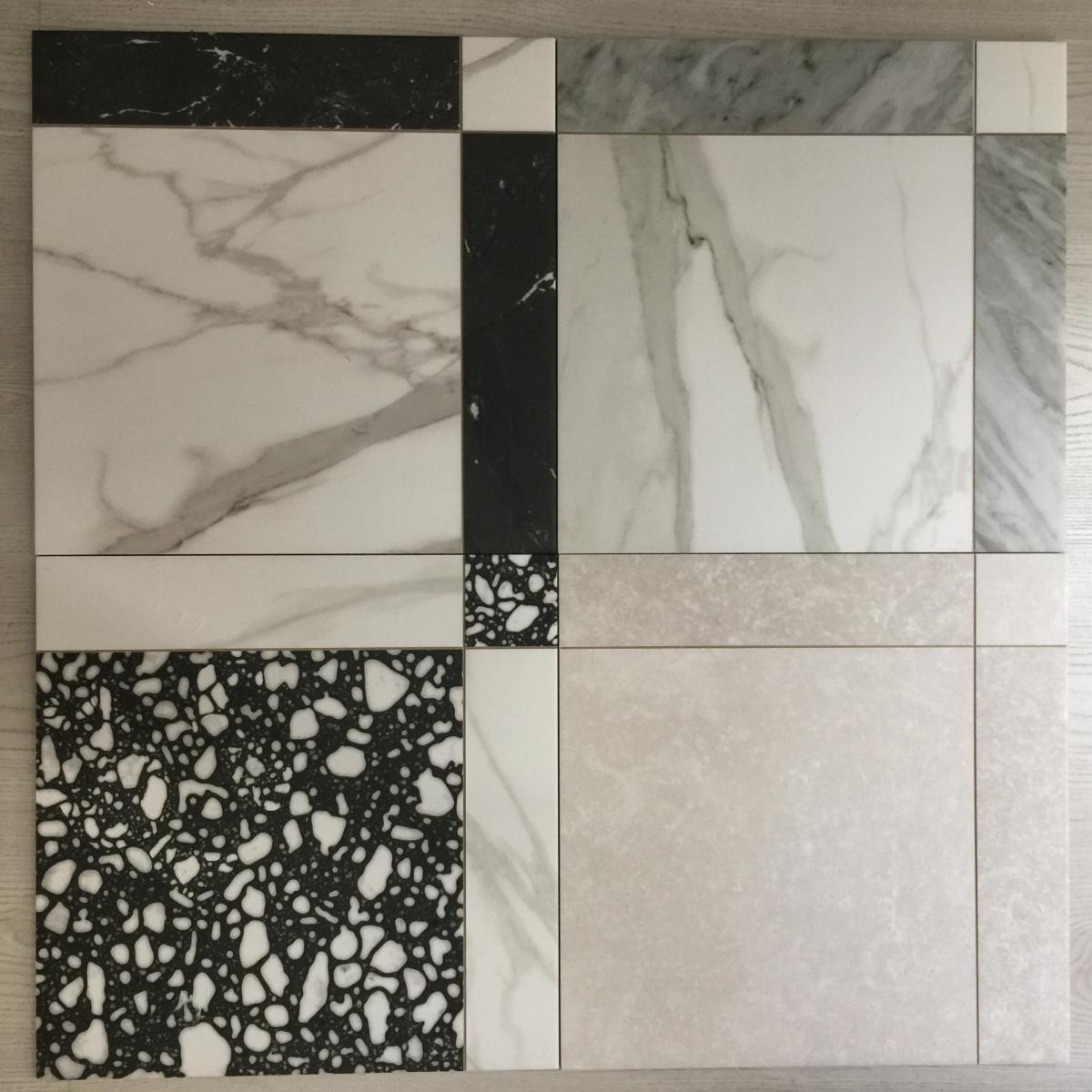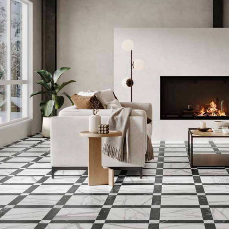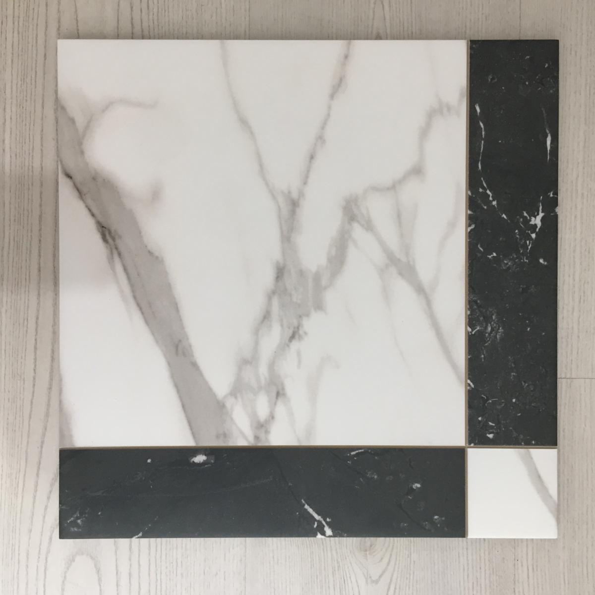 • GRACE EFECTO MÁRMOL BLANCO Y NEGRO 44x44cm
