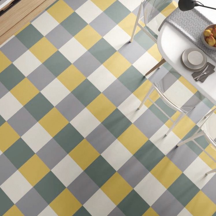 Baldosas imitación hidráulico realizadas en porcelánico de alta calidad.