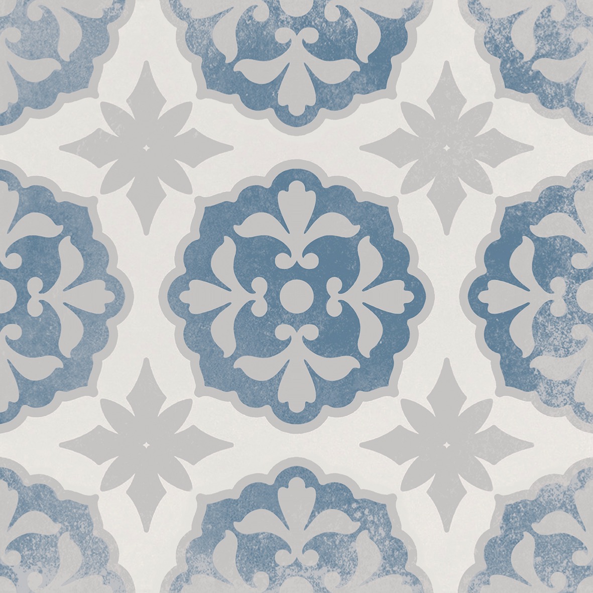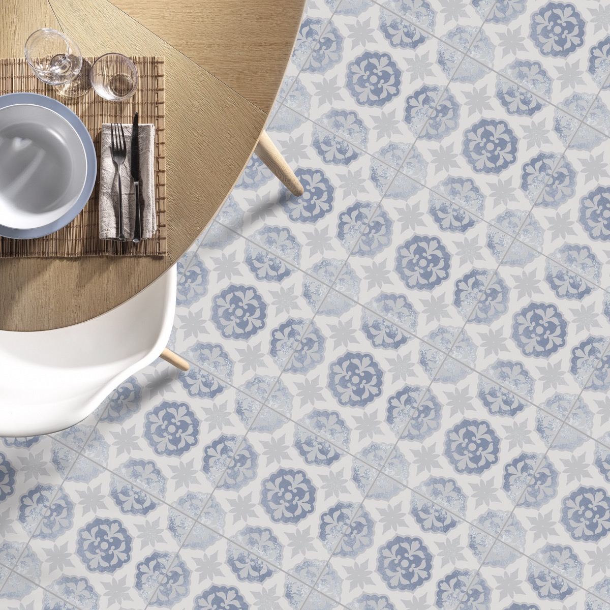 Baldosas imitación hidráulico realizadas en porcelánico de alta calidad.