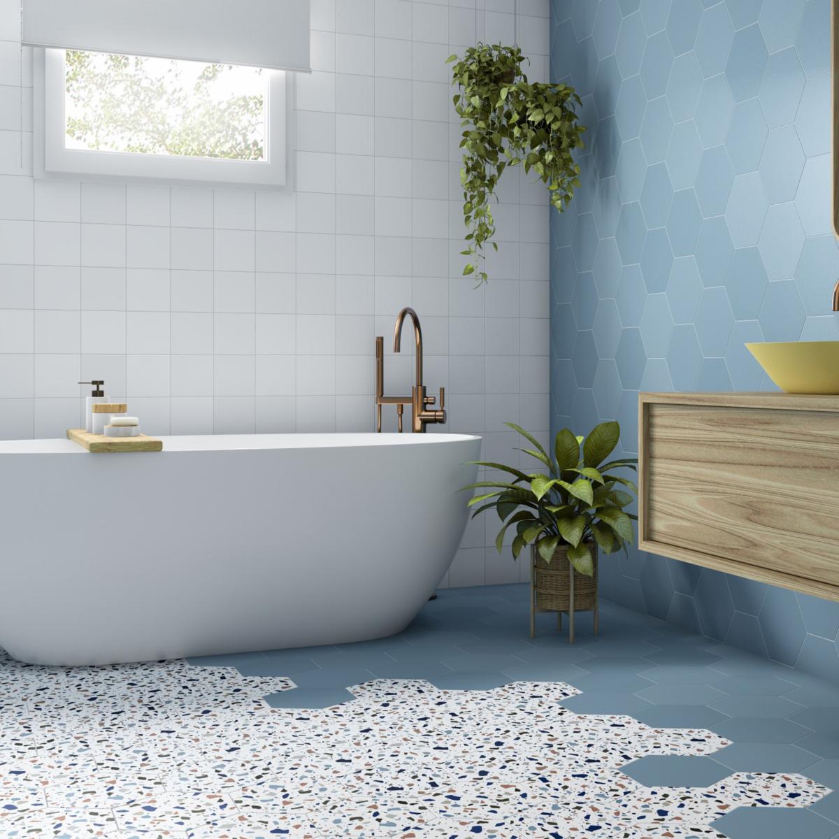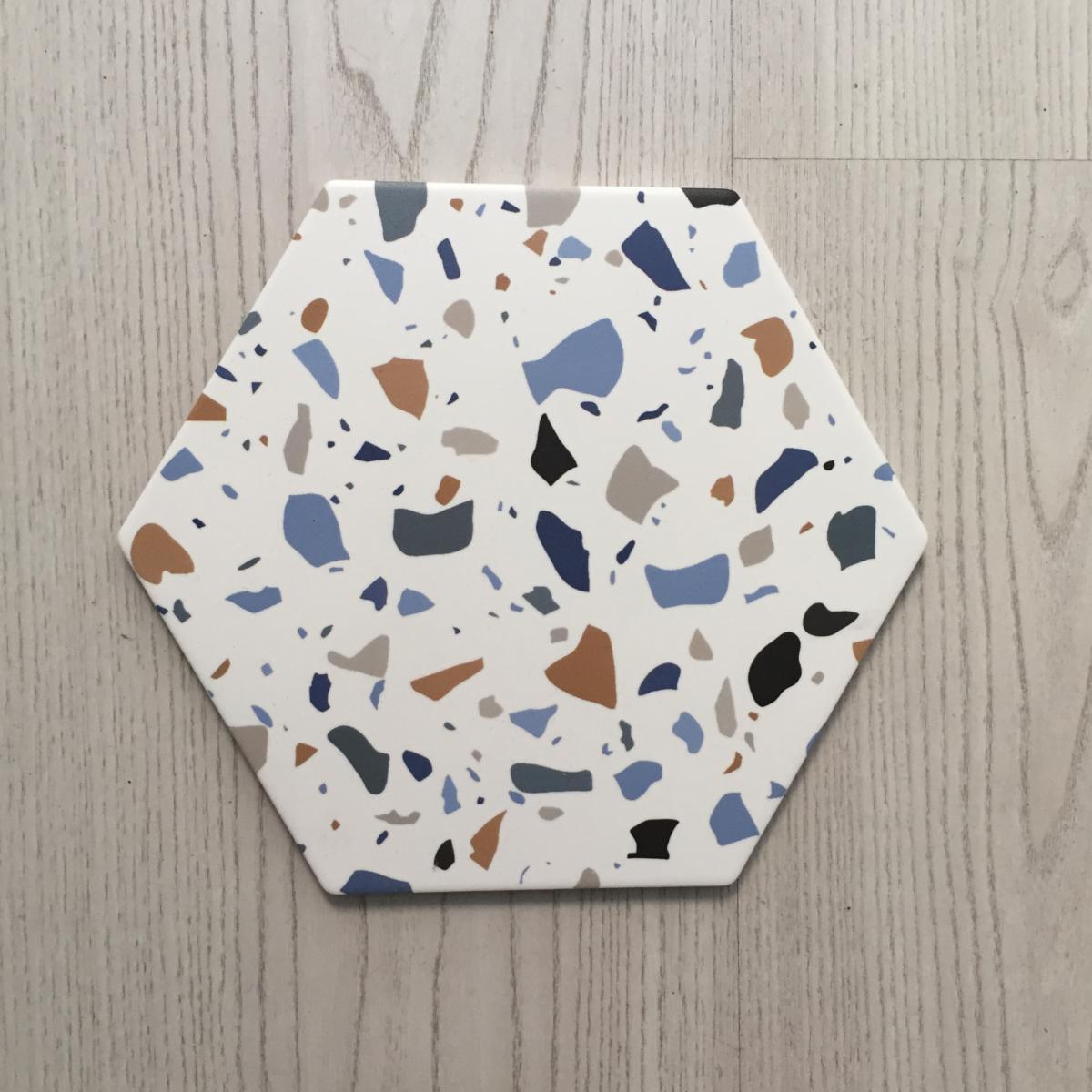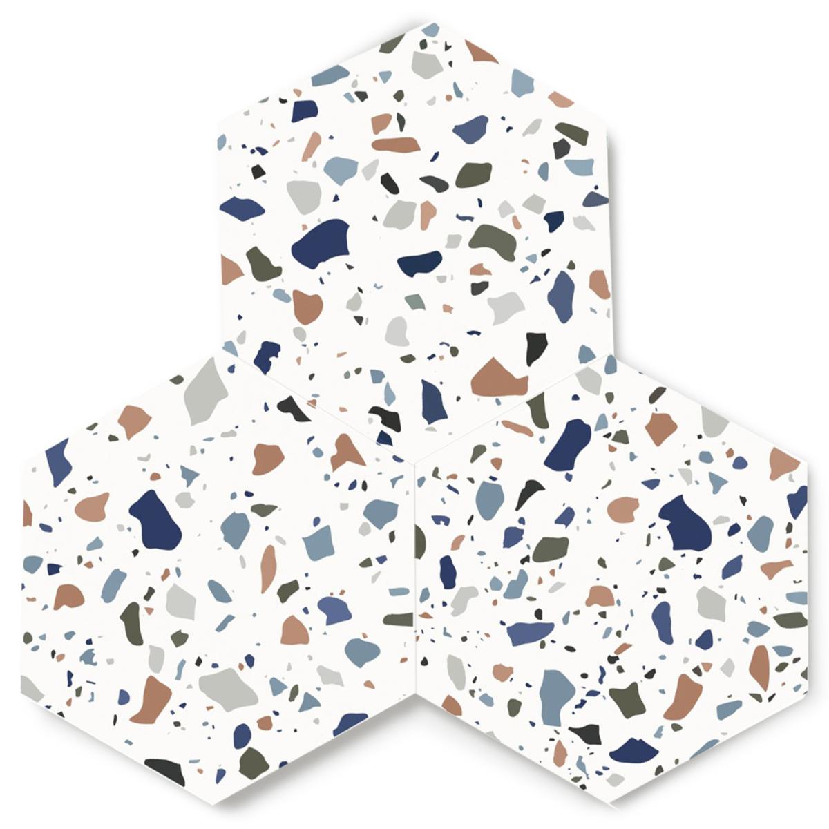 Baldosas imitación terrazo realizadas en porcelánico de alta calidad.